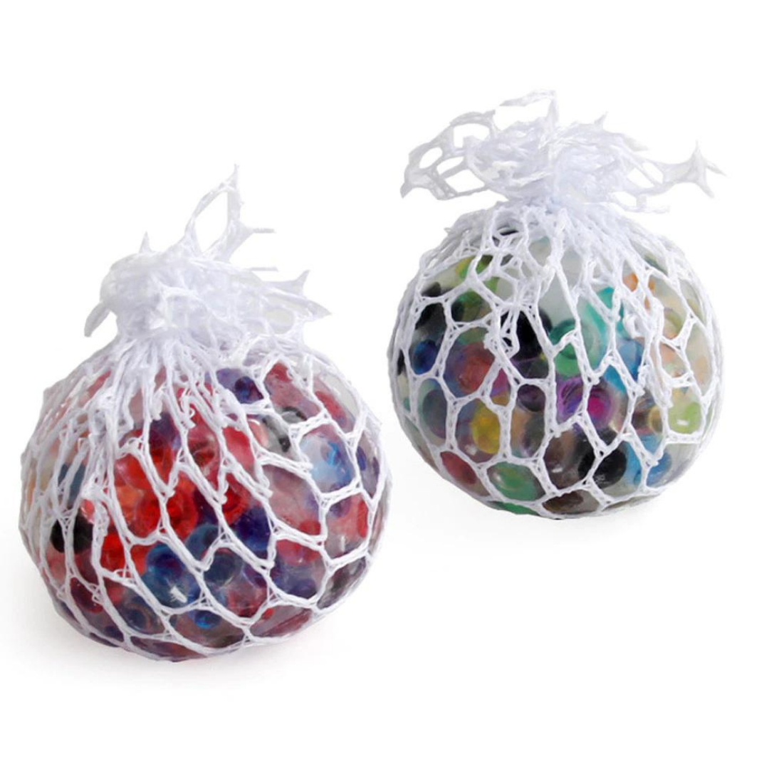 Mingea este realizata dintr-un cauciuc subitre, dar rezistent, umpluta cu gelatina slime si prinsa intr-o plasuta.