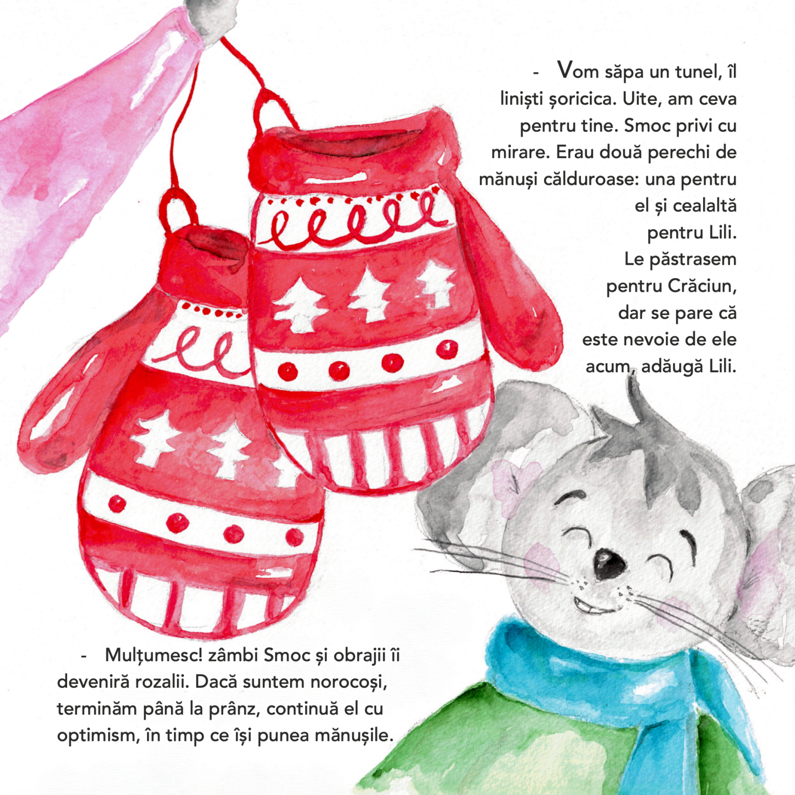 Iarna a sosit și a așternut peste pământ un covor generos de zăpadă, iar Smoc și Lili sunt blocați în ascunzătoarea lor ca într-o fortăreață înghețată. Dar, ca de fiecare dată, cei doi prieteni își unesc forțele și iată-i în lumina soarelui, privind cu admirație tabloul feeric al iernii. Dar, ce le văd ochii?